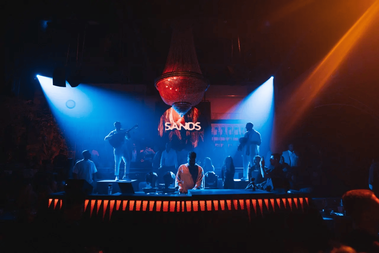 Elegant beachfront setting, signature fire shows, percussionists, and a house-music-heavy crowd.