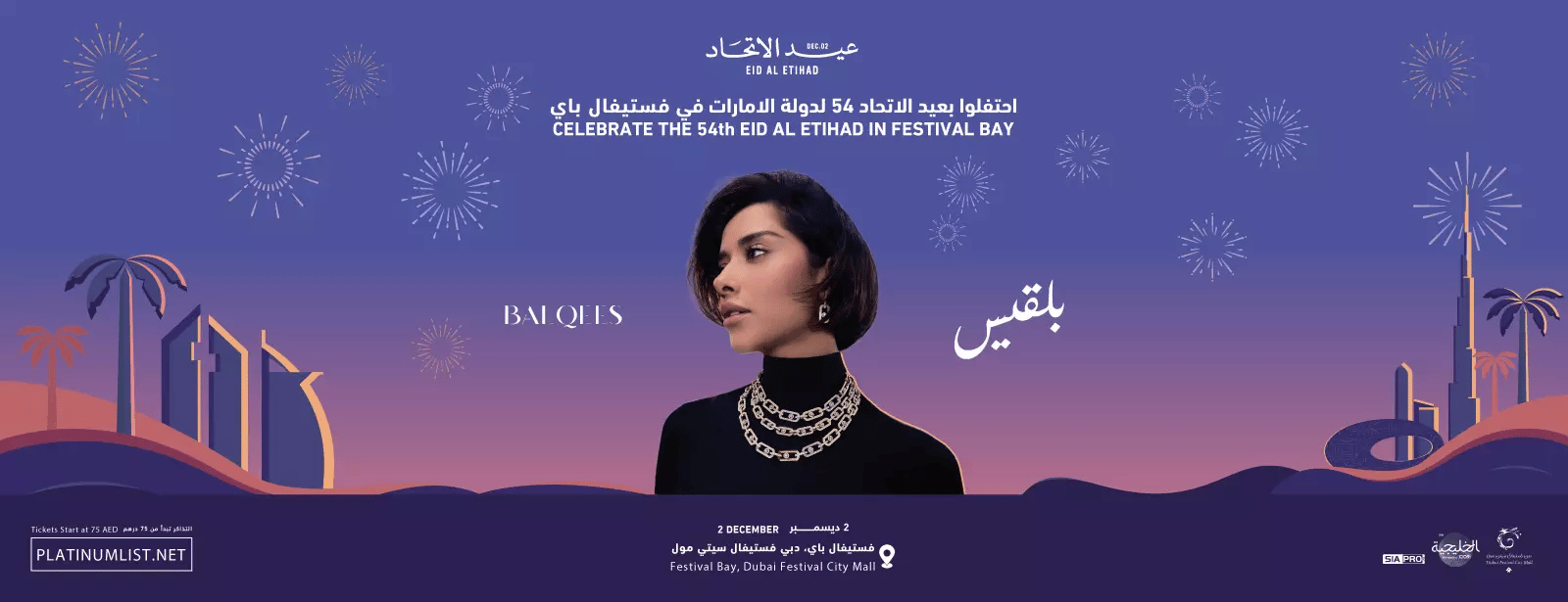 A high-production National Day performance by Balqees will take over Festival Bay. Expect packed promenades, drone effects, and a massive lead-in to the 9 PM fireworks.